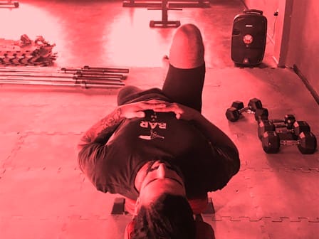 La vista se enfoca al suelo en línea recta y forma un triángulo con las manos. Todo el cuerpo debe quedar contraído en posición hollow. La fuerza se realiza empujando el suelo para levantar el torso. El movimiento debe ser continuado y consistente. Siempre priorizando la “buena ejecución”.