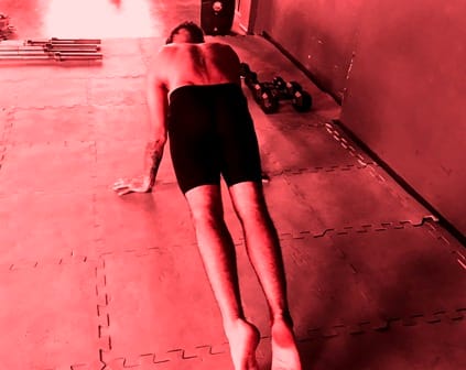 Es necesario utilizar un plano elevado. Manos en apoyo, brazos contraídos, pecho al frente y cintura escapular fija. Las piernas se mantienen en control supendidas del piso. De esta posición inicial se realiza una contracción excéntrica del triceps para permitir que el cuerpo descienda. Siempre en control total del cuerpo.