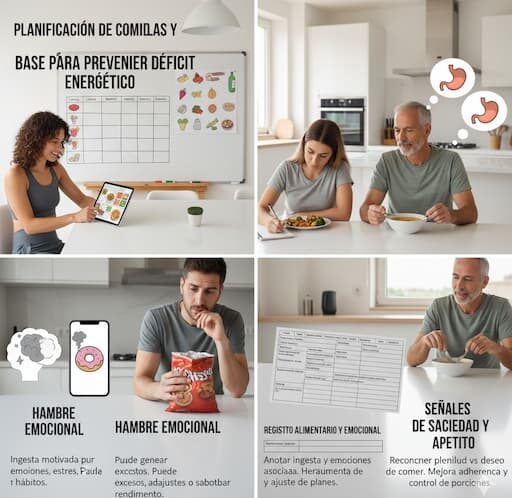 Planificación de comidas: Ajustar horarios y composición para cubrir necesidades y reducir impulsos.