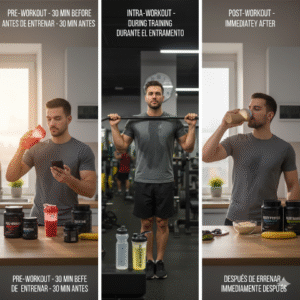 Macronutrientes concentrados | Proteínas en polvo, hidrolizados, aminoácidos (BCAA, leucina) | Suministro de AA; estimulación mTOR → síntesis proteica | Alta en recuperación/hipertrofia si aporte dietario es insuficiente (ISSN). |